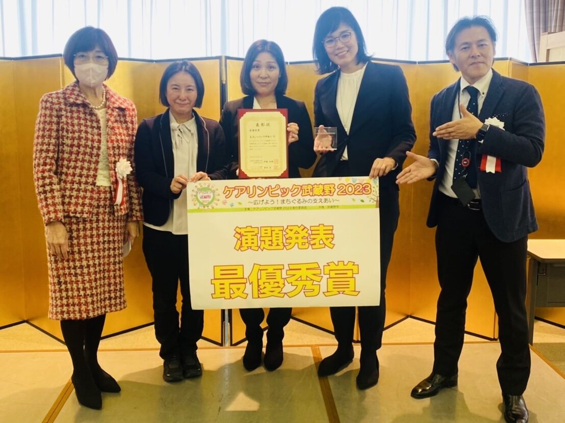 武蔵野市共催 「ケアリンピック武蔵野2023~広げよう!まちぐるみの支え合い~」が12月2日に武蔵野スイングホールに於いて開催され、本校の荒井教員とむチューいきいきサロンの看護師さん、杏林大学講師の先生3名が共同で、介護現場の先進的な取り組みなどを発表する演題発表に参加して「最優秀賞」を受賞しました。